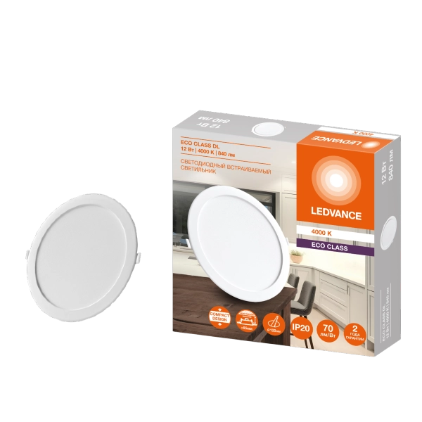 Светильник светодиодный встраиваемый 9W/3000K D-123 H-28 DL ECO IP20 D95