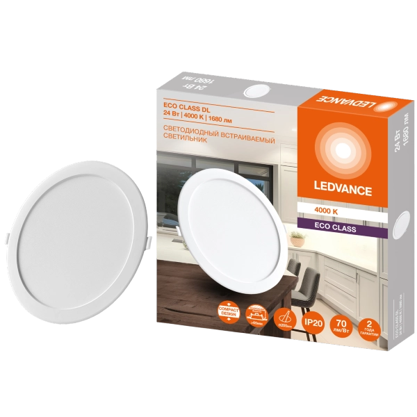 Светильник светодиодный встраиваемый 24W/4000K D-225 H-28 DL ECO IP20 D200