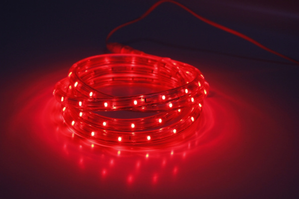 Светодиодный Дюралайт Ø13 мм Красный 220В, 36 LED/м, Свечение 180°, IP65, Бухта 100м