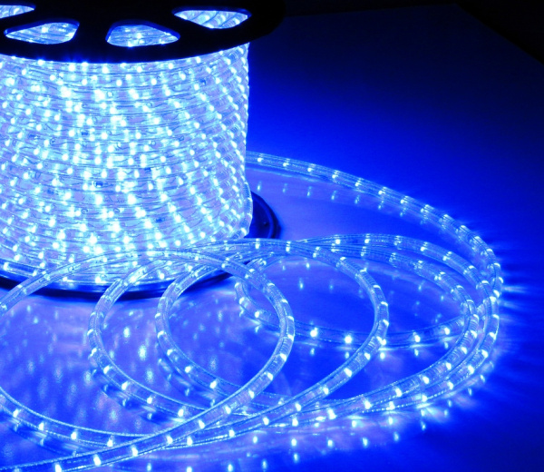 Светодиодный Дюралайт Ø13 мм Синий 220В, 36 LED/м, Свечение 180°, IP65, Бухта 100м