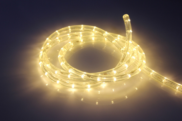 Светодиодный Дюралайт Ø13 мм Тепло-Белый 220В, 36 LED/м, Свечение 360°, IP65, Бухта 100м