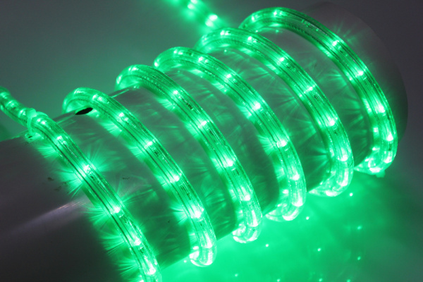 Светодиодный Дюралайт Ø13 мм Зеленый 220В, 36 LED/м, Свечение 180°, IP65, Бухта 100м
