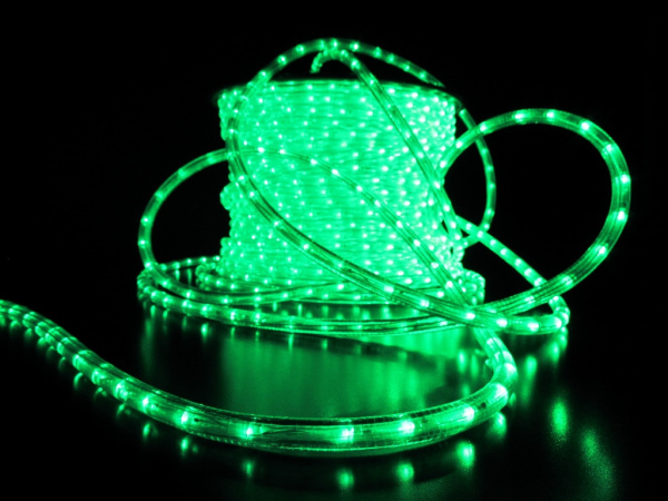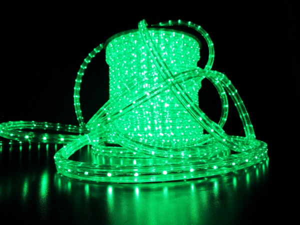 Светодиодный Дюралайт Ø13 мм Зеленый 220В, 36 LED/м, Свечение 360°, IP65, Бухта 100м