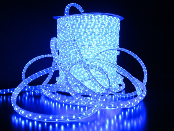 Светодиодный Дюралайт Ø13 мм Синий 220В, 36 LED/м, Свечение 180°, IP65, Бухта 100м