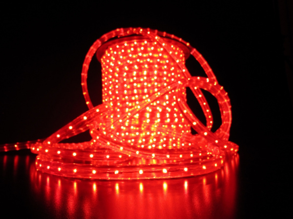 Светодиодный Дюралайт Ø13 мм Красный 220В, 36 LED/м, Свечение 180°, IP65, Бухта 100м
