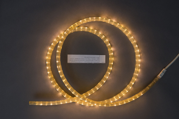 Светодиодный Дюралайт Ø13 мм Желтый 220В, 36 LED/м, Свечение 180°, IP65, Бухта 100м