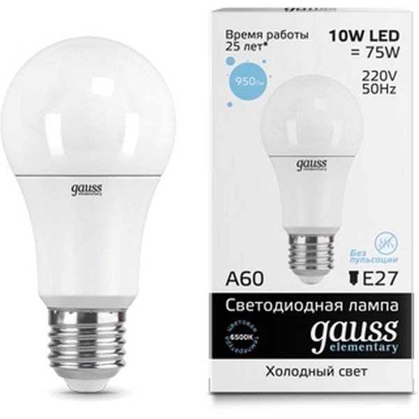 Gauss 9.5W 950lm 4100 E27 LED 1/10/100 103102210 лампа