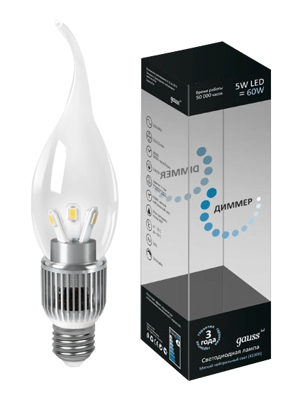 Gauss LED Candle Tailed Crystal clear dim 5W E14 4100K HA104201205-D лампа