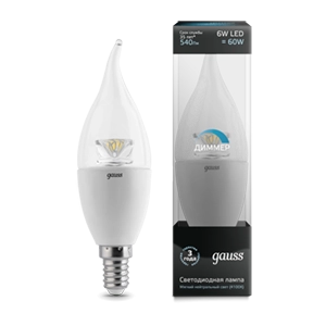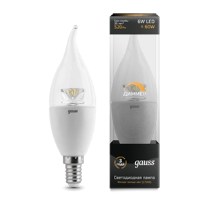 Gauss LED Candle TaiLEDdim Crystal Clear E14 6W 2700K 1/10/50 104201106-D лампа