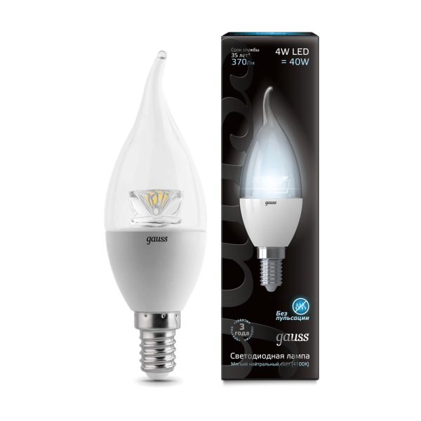 Gauss LED Candle Tailed Crystal Clear E14 4W 4100K 1/10/50 104201204 лампа