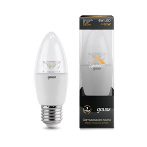 Gauss LED Candle-dim Crystal Clear E27 6W 2700 1/10/50 103202106-D лампа