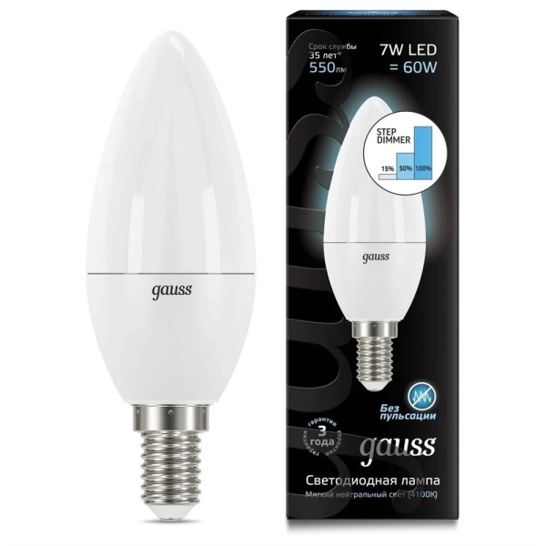 Gauss 6.5W 550lm 4100 E14 LED 1/10/100 103101207 лампа