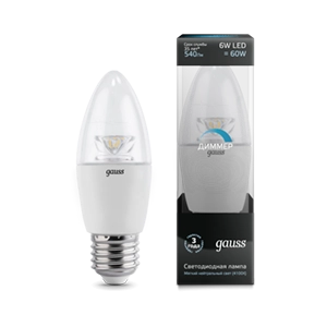 Gauss LED Candle-dim Crystal Clear E27 6W 4100 1/10/50 103202206-D лампа
