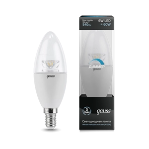 Gauss LED Candle-dim Crystal Clear E14 6W 4100 1/10/50 103201206-D лампа