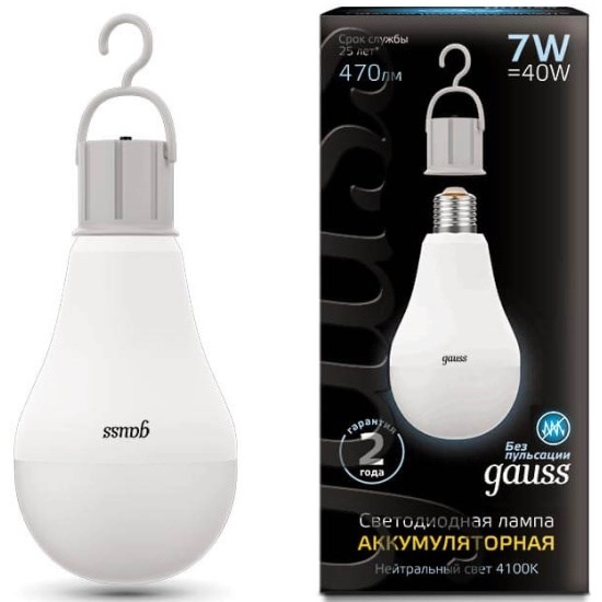Gauss A60 7W 470lm 4100K E27 Li-Ion LED 1/10/60 102402207 лампа