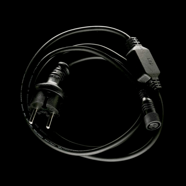 Кабель питания 1,5м с Выпрямителем для Каучуковых и ПВХ Нитей 220В, Провод Черный Каучук, IP65