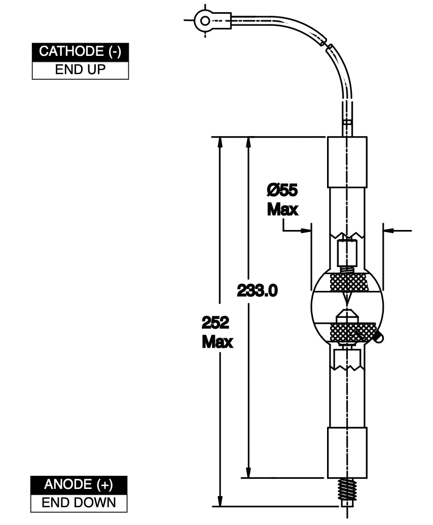 Лампы длинной или короткой дуги с вольфрамовыми электродами