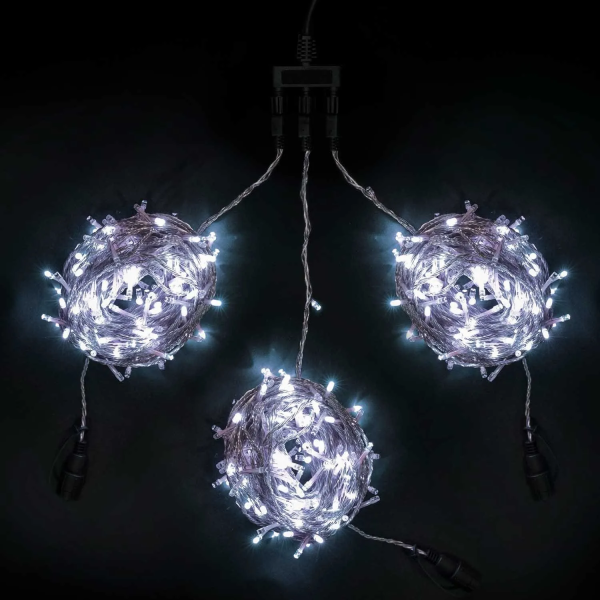Комплект 3 Белых Нити по 20м, 600 LED, Провод Черный ПВХ, IP54
