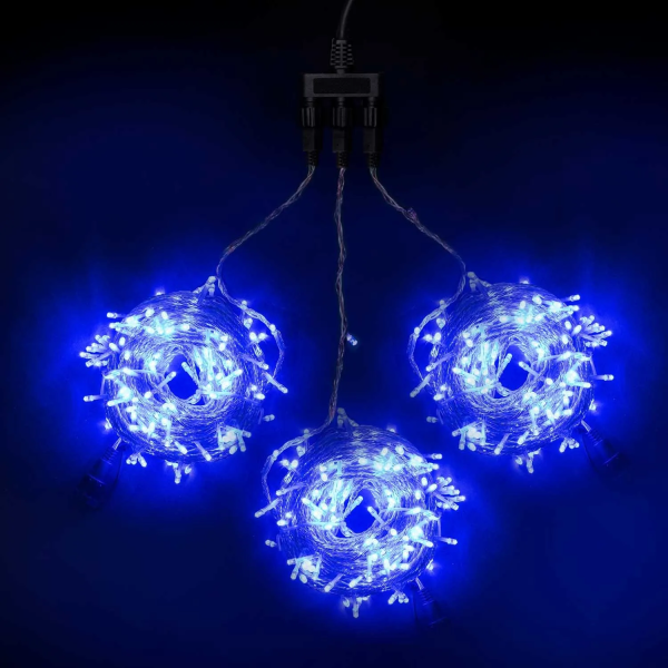 Комплект 3 Синих Нити по 20м, 600 LED, Провод Черный ПВХ, IP54