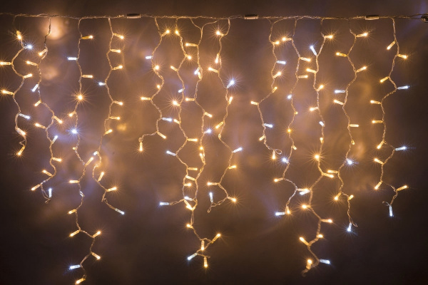 Гирлянда Бахрома с Колпачком 3,2 x 0,9 м Тепло-Белая с Мерцанием Белого Диода 220В, 168 LED, Провод Прозрачный ПВХ, IP65