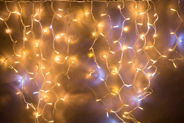 Гирлянда Бахрома с Колпачком 4,9 x 0,5 м Тепло-Белая с Мерцанием Белого Диода 220В, 195 LED, Провод Прозрачный ПВХ, IP65