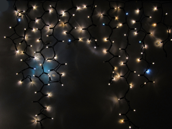 Гирлянда Бахрома с Колпачком 3,2 x 0,9 м Тепло-Белая с Мерцанием Белого Диода 220В, 168 LED, Провод Черный ПВХ, IP65