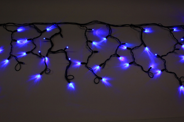 Гирлянда Бахрома с Колпачком 4,9 x 0,5 м Синяя с Мерцанием Белого Диода 220В, 195 LED, Провод Прозрачный ПВХ, IP65