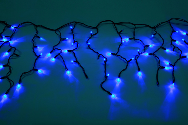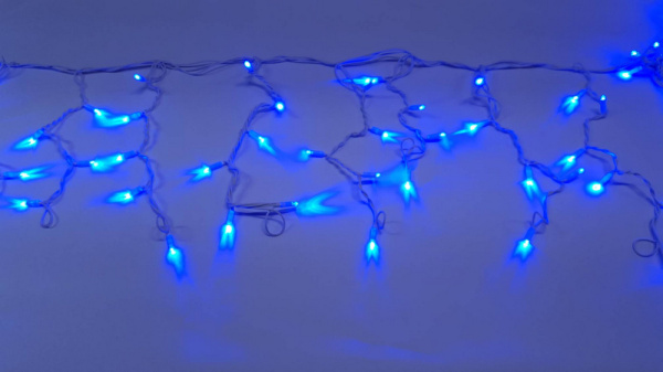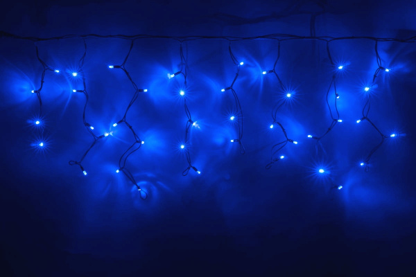 Гирлянда Бахрома с Колпачком 3,2 x 0,9 м Синяя с Мерцанием Белого Диода 220В, 168 LED, Провод Прозрачный ПВХ, IP65