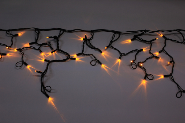 Гирлянда Бахрома с Колпачком 3,1 x 0,5 м Жёлтая с Мерцанием Белого Диода 220В, 120 LED, Провод Черный ПВХ, IP65
