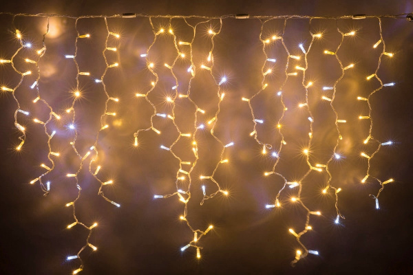 Гирлянда Бахрома с Колпачком 3,1 x 0,5 м Желтая с Мерцанием Белого Диода 200В, 120 LED, Провод Прозрачный ПВХ, IP65