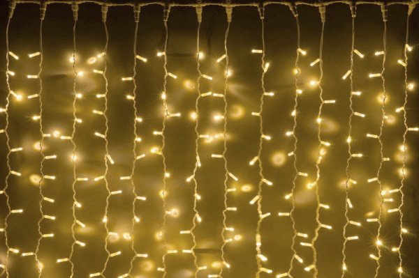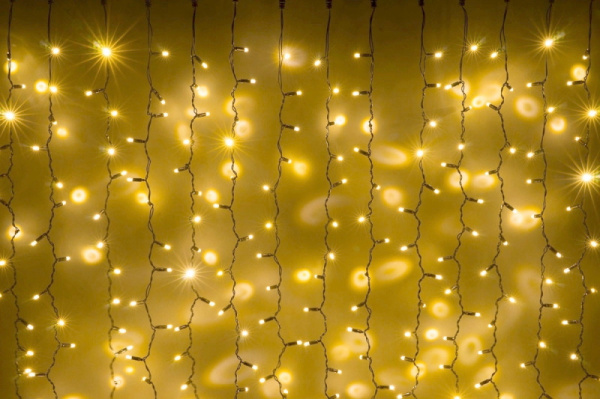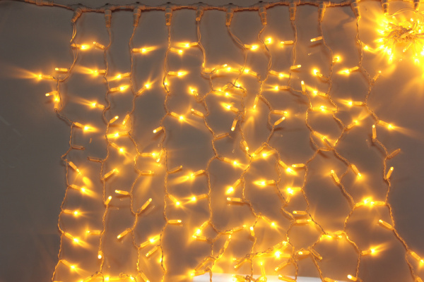 Гирлянда Занавес Облегченный 2 x 2 м Желтый 220В, 400 LED, Провод Прозрачный ПВХ, IP54