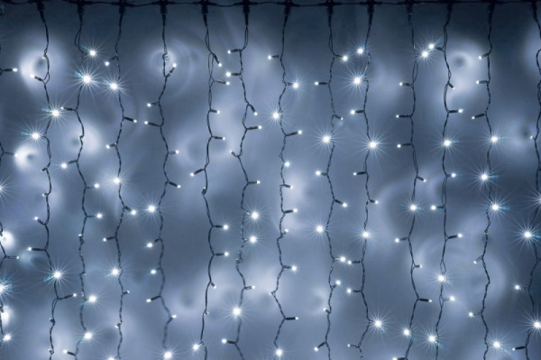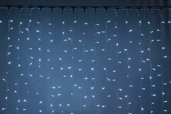Гирлянда Занавес Облегченный 2 x 3 м Белый 220В, 600 LED, Провод Прозрачный ПВХ, IP54