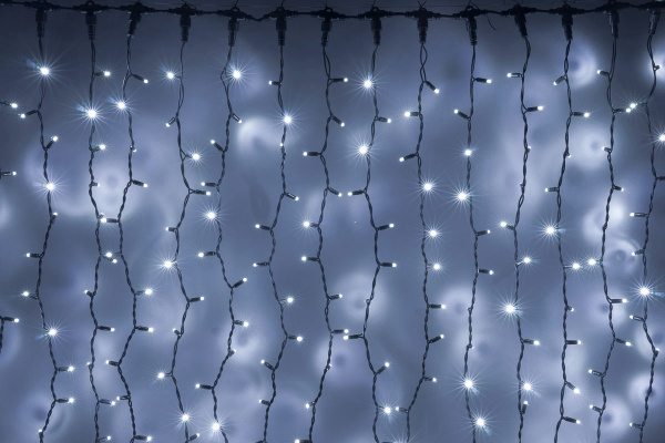 Гирлянда Занавес Облегченный c Колпачком 2 x 1 м Белый 220В, 200 LED, Провод Черный ПВХ, IP54