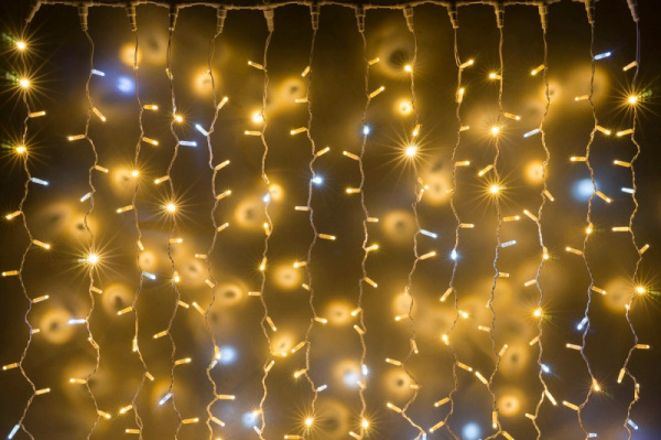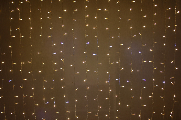 Гирлянда Занавес Облегченный 2 x 3 м Тепло-Белый с Мерцанием Белого Диода 220В, 600 LED, Провод Прозрачный ПВХ, IP54