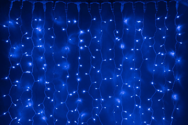 Гирлянда Занавес Облегченный 2 x 3 м Синий 220В, 600 LED, Провод Прозрачный ПВХ, IP54