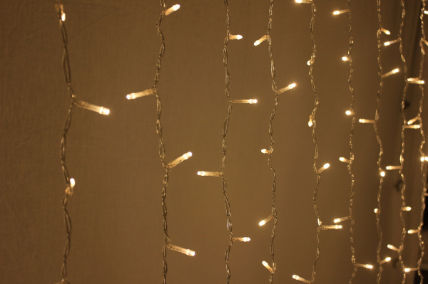 Гирлянда Занавес Облегченный 2 x 3 м Экстра Тепло-Белый 220В, 600 LED, Провод Прозрачный ПВХ, IP54
