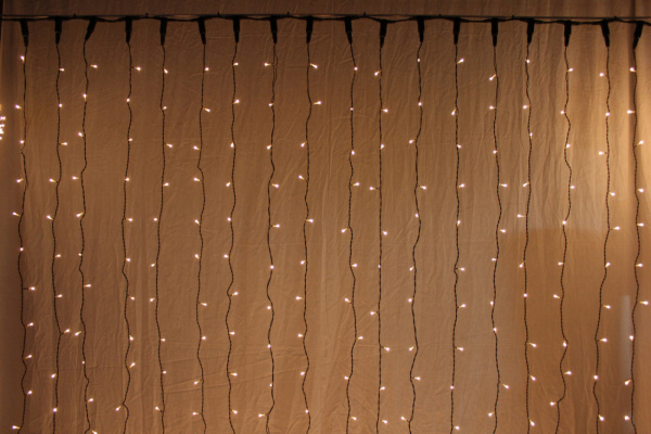 Гирлянда Занавес Облегченный c Колпачком 2 x 1 м Тепло-Белый 220В, 200 LED, Провод Черный ПВХ, IP54