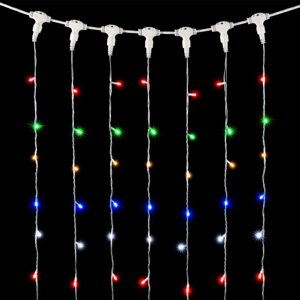 Гирлянда Занавес Облегченный 2 x 3 м Разноцветный 220В, 600 LED, Провод Прозрачный ПВХ, IP54