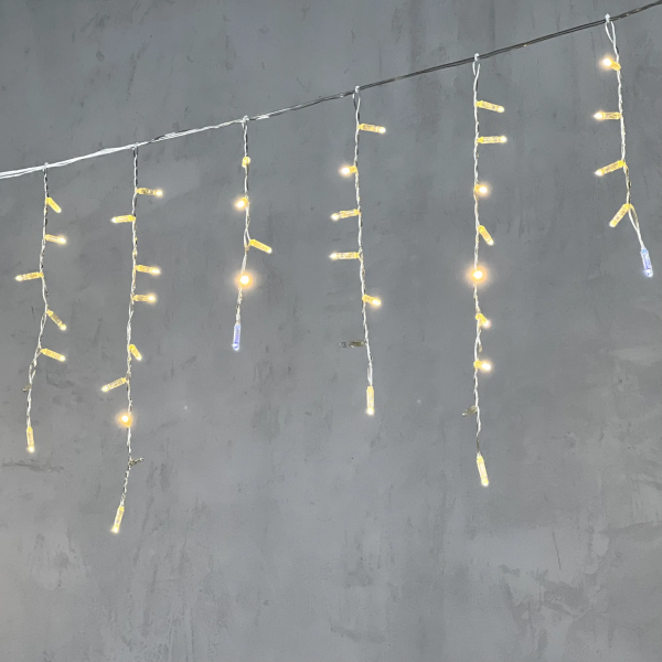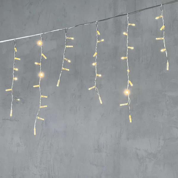 Гирлянда Бахрома 4,9 x 0,5 м Тепло-Белая с Мерцанием Белого Диода 220В, 240 LED, Провод Прозрачный ПВХ, IP54