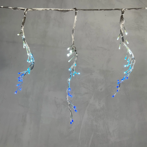 Гирлянда Бахрома с Эффектом Бегущий Огонь 1,75 x 0,4 м Бело-Синяя 24В, 320 LED, Провод Прозрачный Силикон, IP65