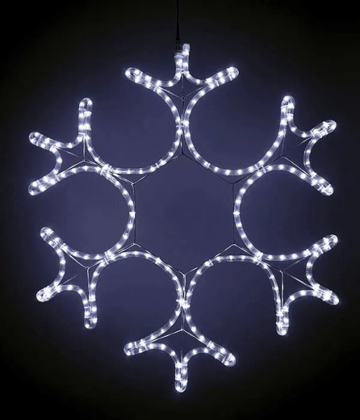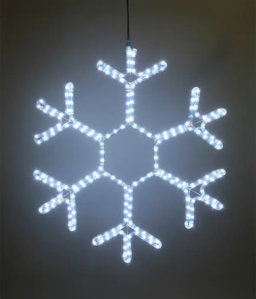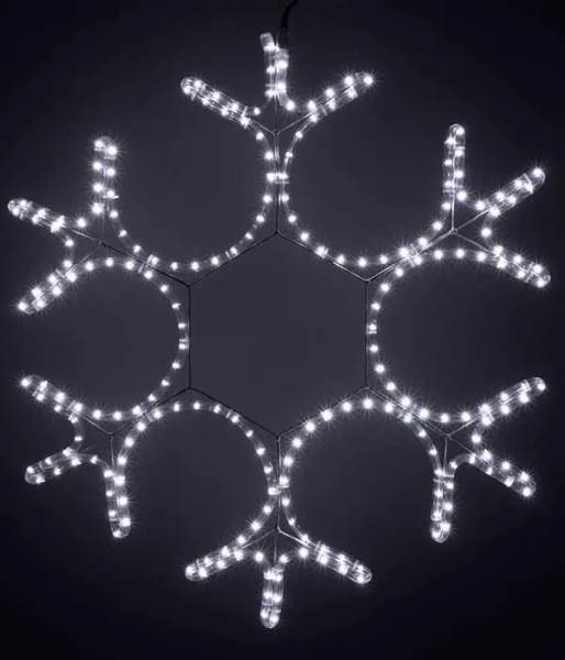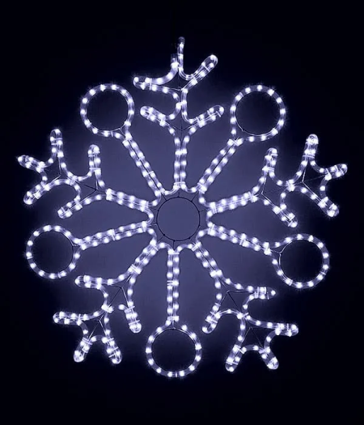 Светодиодная Снежинка «Кристалл» Ø0,8м Белая, Дюралайт на Металлическом Каркасе, IP54