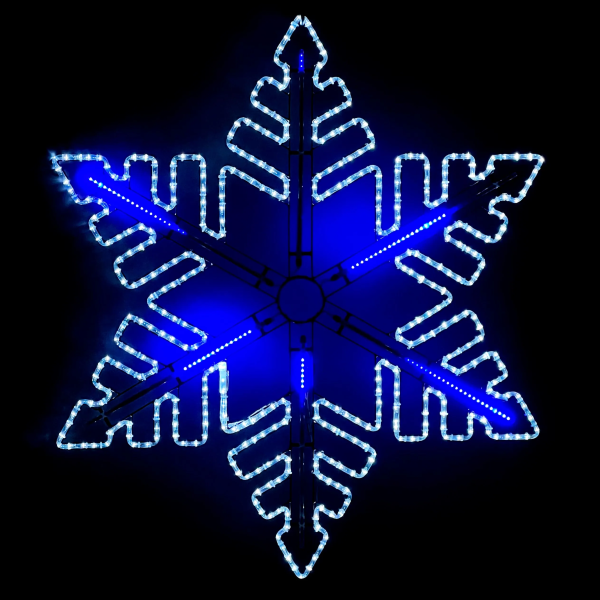 Светодиодная Снежинка «Black Edition» Ø1,3м Белая с Динамикой Синего Диода 24В, Дюралайт на Металлическом Каркасе, IP54