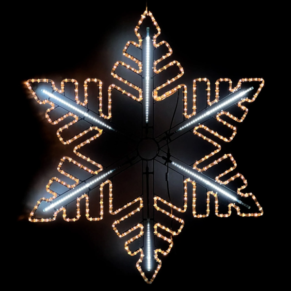 Светодиодная Снежинка «Зимняя Классика» Ø1,1м Тепло-Белая, Дюралайт на Металлическом Каркасе, IP54