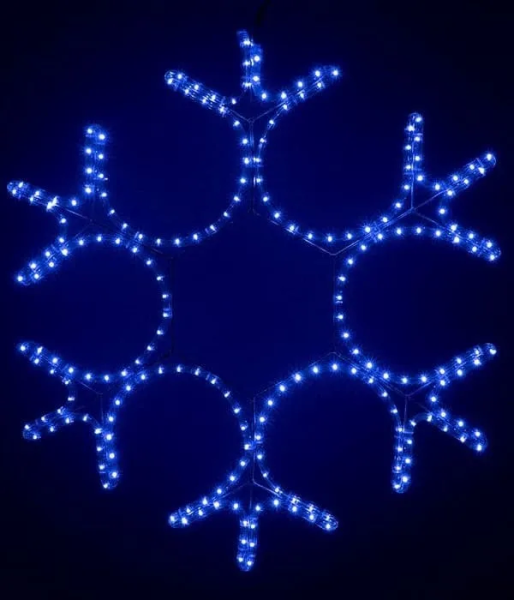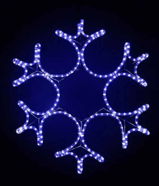Светодиодная Снежинка «Кристалл» Ø0,8м Синяя, Дюралайт на Металлическом Каркасе, IP54