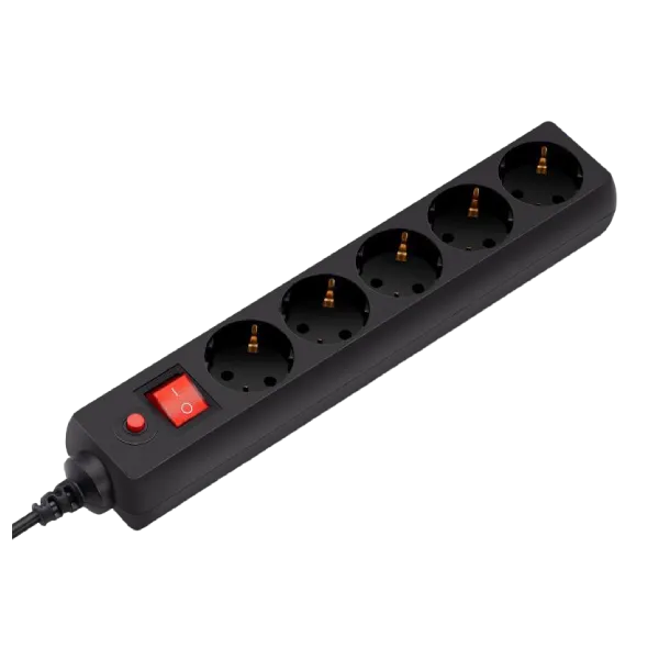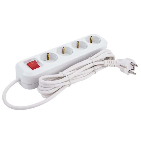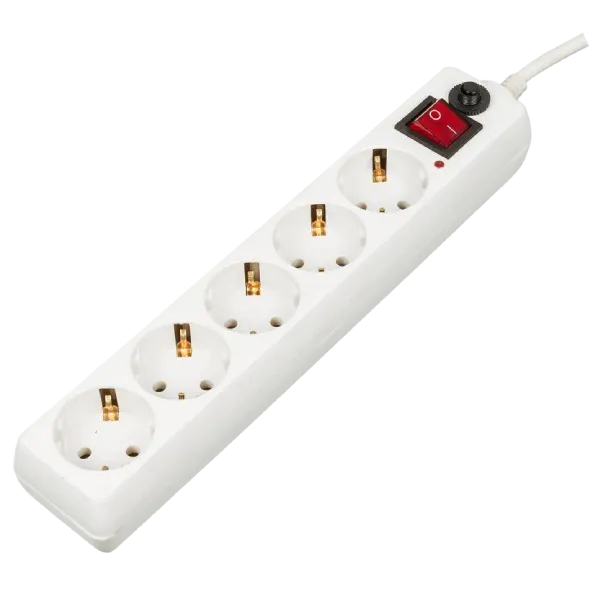 4. Выключатель — позволяет включать и выключать удлинитель без необходимости вынимать штекер из розетки.